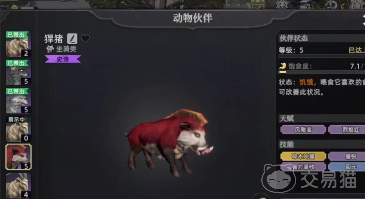 野猪只有达到了紫色属性以上,才具备有碎木冲撞效果,并且还有可能附带有强力吸收效果,可以帮助玩家战斗。