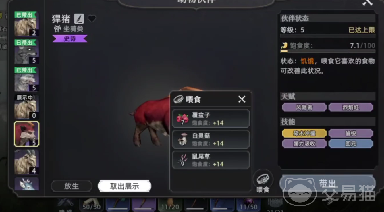 前期有三类宠物是需要玩家采集的,如包含有山羊、 野猪、雪地狼。