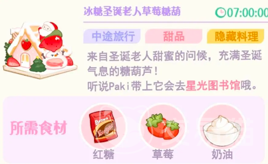 然后就是七小时的隐藏料理,需要七小时的烹饪时间,非常多,小编一个一个的介绍给玩家们,双皮奶需要鸡蛋和牛奶,广式烧卖需要饺子皮和猪肉,蛋可丽饼需要三种食材,分别是饼皮、肉馅和鸡蛋,焦糖双皮奶在双皮奶的基础上加上红糖就可以了。