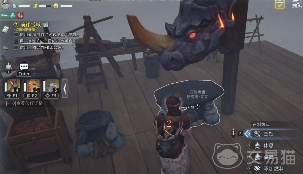 最初级的取暖设施是篝火,它能够提供基础的保暖,并且还能够烹饪食物,不止如此,在雪山区域当中,所有冰冻的水源或者是生物,都可以使用篝火来融化,玩家只需要使用木材和碎石制造,就能够将其搭建成功了,但是篝火具有一定的耐久度,并不能够长时间点燃,不属于持久性的保暖设施。