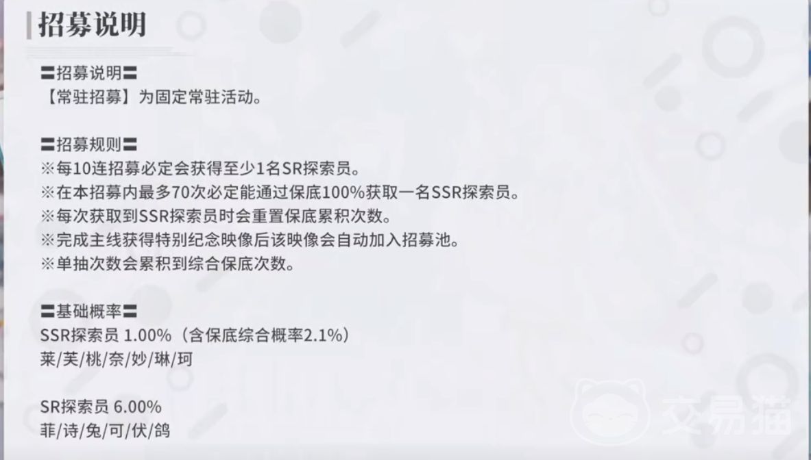 不过万幸的是常驻池的爆率很低,但是在累积300抽之后可以自选一个ssr角色。不过只能选择一次,up角色的抽取机制和常驻一样。也是70抽的保底。不过up角色的保底只有当期up池子有效,不会累积一般up是使用星石进行抽取,这个资源可以做日活或者充值获取。