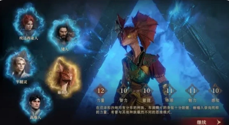 最后一种就是蜥蜴人这个种族,作为一款高爆发的近战种族,他的体质是非常强悍的,并且还拥有坚硬的鳞片,你良心非常的强,在战斗过程中可以利用自己的力量以及体制来释放强大的战斗能力,如果大家想要拥有更加高爆发的输出,就可以选择这个职业,但是它的灵活性也是比较低的,战术选择的空间比较小,如果是新手玩家们,还是比较建议大家选择人类或者半精灵这两个种族,后续大家在战斗的过程中可以适配多种玩法。