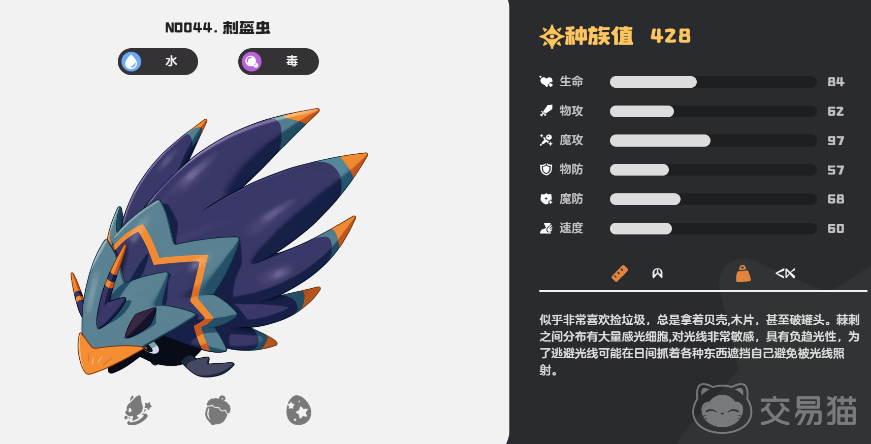 不过刺盔虫经过进化之后,它的生命值跟双防能力就会显著地提升,这时候玩家要合理的利用刺盔虫,让它对敌人造成高额的伤害。由于刺盔虫装备毒系和水系的技能,而这两种技能可以有效地叠加,最终能够有效地消耗敌人的生命值。