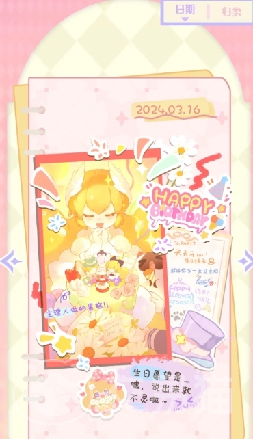 在获得方式上还能通过制作一些特定的蛋糕来获得。游戏的食谱中也有一些隐藏款,玩家如果能解锁隐藏款食物的话,制作后并使用蛋糕,可能在回到主界面的时候会有一些记忆片段,看完这些片段后也有可能活动隐藏的手账内容。
