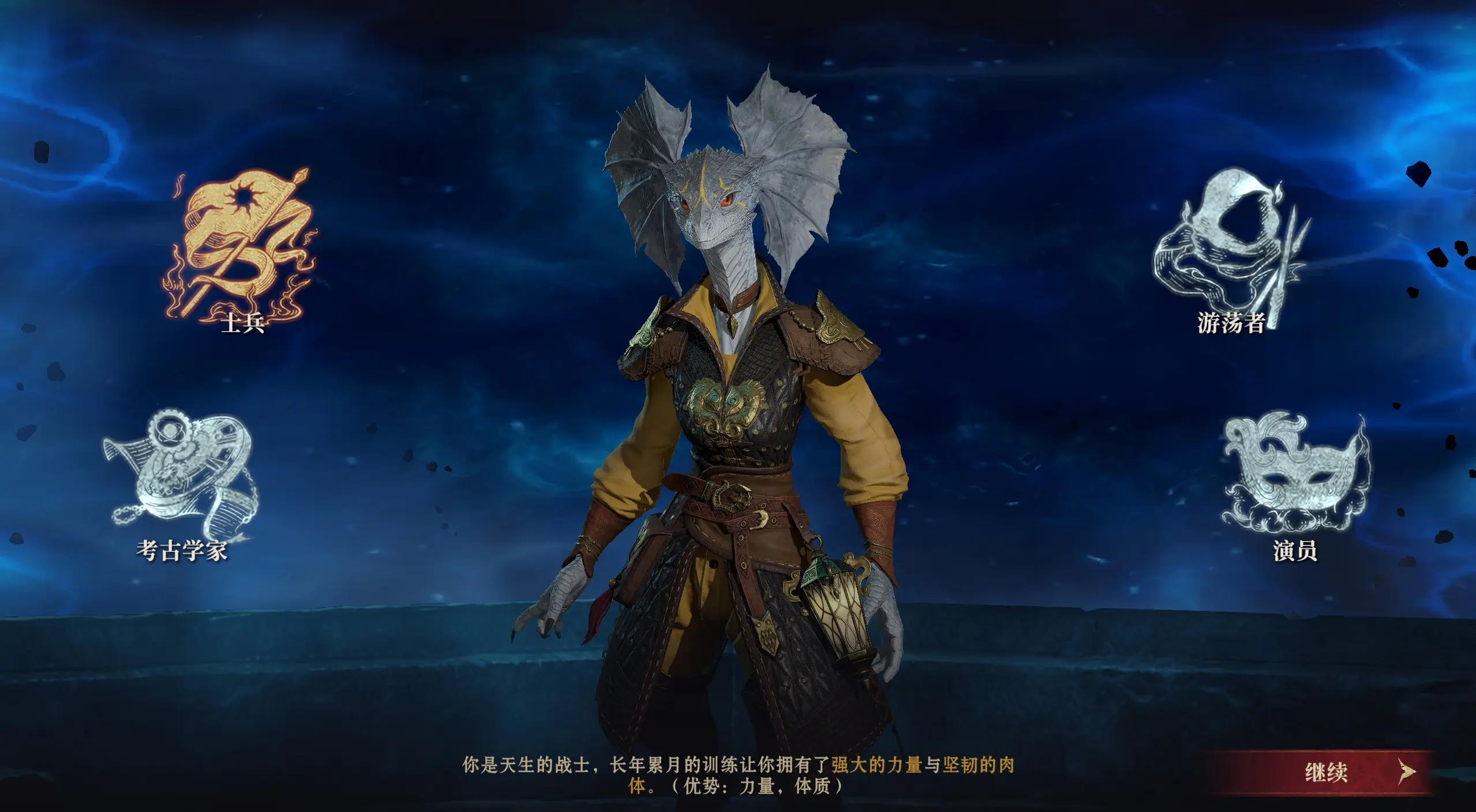 然后我们选择成为了士兵的话,就可以触发关于士兵的检定事件。士兵的优势在于力量以及体质,所以只要遇到关于破坏或者畅快痛饮的事件。那么就大概率可以获得更高的点数,另外还会增加你的力量属性以及体质。当我们在旅行的过程中,完成各种各样的任务后。