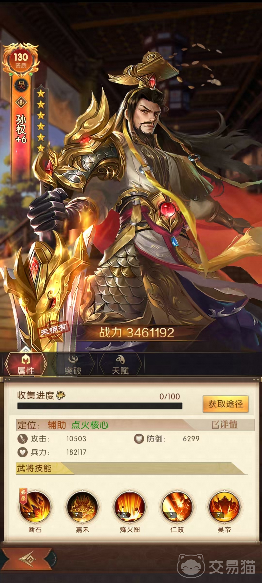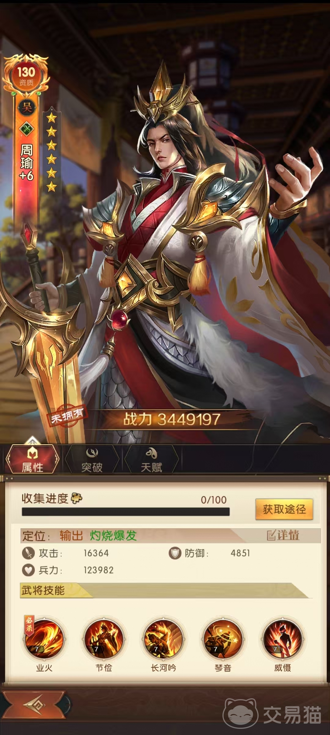 以上是属于比较基础的搭配,后续红将组合选择的是陆逊和孙权作为前排,周瑜、大乔、布练师作为后排。这里面的周瑜是主要输出核心,孙权是点火核心。孙权效果是只要在场上,所有吴国武将受到攻击时,都有几率对目标施加灼烧,这样很快就可以将对方全部点火起来。周瑜大招释放时候会优先选中被灼烧的单位造成攻击伤害,敌人被添加灼烧,就有机率使周瑜恢复怒气。