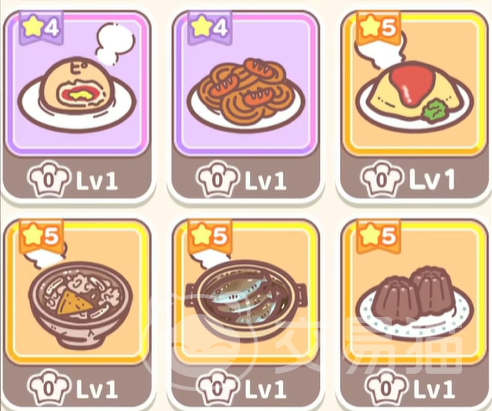 至于食谱方面都是很简单易懂的,前期基本山以四星的食物为主,而且都是面食,包括了米饭,寿司,面包等,这些食物的制作流程很简单,基本上一步到位,而且随着烹饪的次数增加,这些食物的熟练度会加深,可以一次烹饪好几道美食,从而给其他角色提供美食。