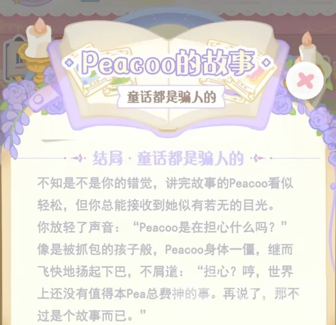 经过长时间的养成后玩家能解锁每个角色的结局,当然结局会有好和坏,这和玩家养成期间解锁的关于各个角色的故事章节内容有关。关于pea有2个章节的故事内容,一个是关于她热爱的演艺事业的,一个是关于和主理人“你”的结局。那么结局是好结局还是坏结局就看玩家们解锁了几个结局碎片,大于2个碎片以上才能解锁好的结局。