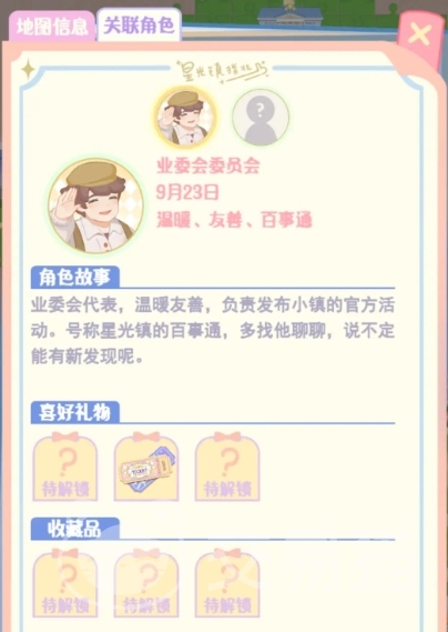 5、业委会代表:他作为业主委员会的代表,他知晓星光镇上的很多事情,他比较喜欢戏票票根、新书优惠券;