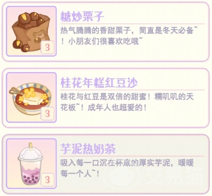 在星光镇上生活着很多的居民,他们有自己的生活轨迹,在养成3小只的时候难免会和它们产生交集,通过回礼能增加与他们的情感连接,也能让玩家获得一些食物道具的回礼。不同的npc在礼物喜好上有所不同: