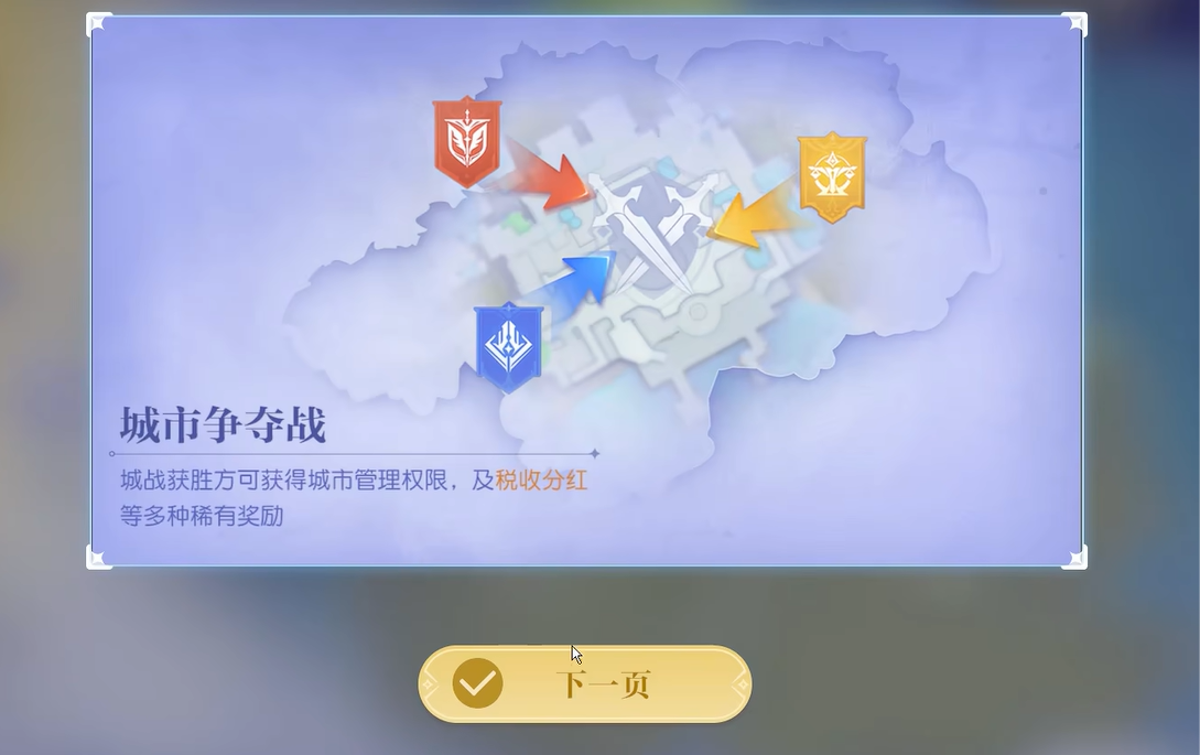 也就是双方不同的阵营,参与对于某个城市的争夺之战。如果作为一个城市的获胜方的话,我们就可以获得这个城市的管理权限。并可以获得税收分红等稀有奖励,也就是说这是阵营战,主要作为瓜分领土后所能获得的分成。至于阵营领袖的话就是某个阵营最大的玩家,若是获得城市争夺战胜利的话,那么这个人便是这个服务器中最厉害的人。