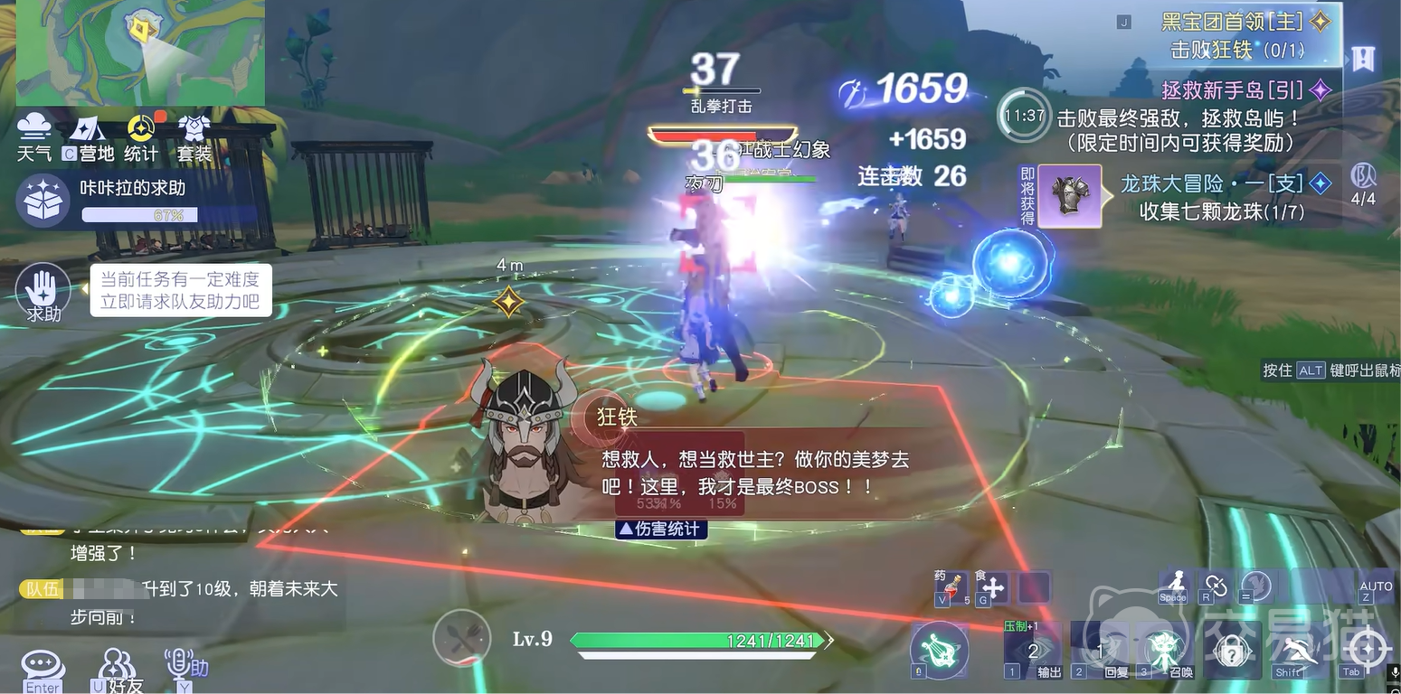 然后我们就可以将它拉到npc的面前,例如夜刃。因为它是帮助我们一起刷怪的角色,当他正在攻击夜刃的时候。我们就可以好好的在旁边远程输出了,这时我们的伤害很高,很快的就可以将他的血量拉低。不过当他的血量快消失时,就会进行全屏范围的攻击。这时我们依然逃出并击杀他就好了。