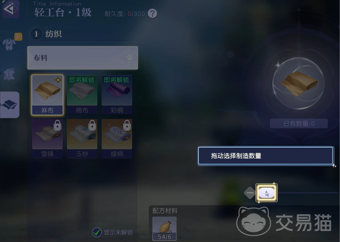 至于轻工台的话,可以在新手小镇中直接找到。点击对话后就可以选择制作选项。之后我们可以制作麻布,因为要缝纫的话,肯定要准备各种布料。如果不会做的话可以在商店中购买图纸,就可以获得相应装备的缝纫图纸了。
