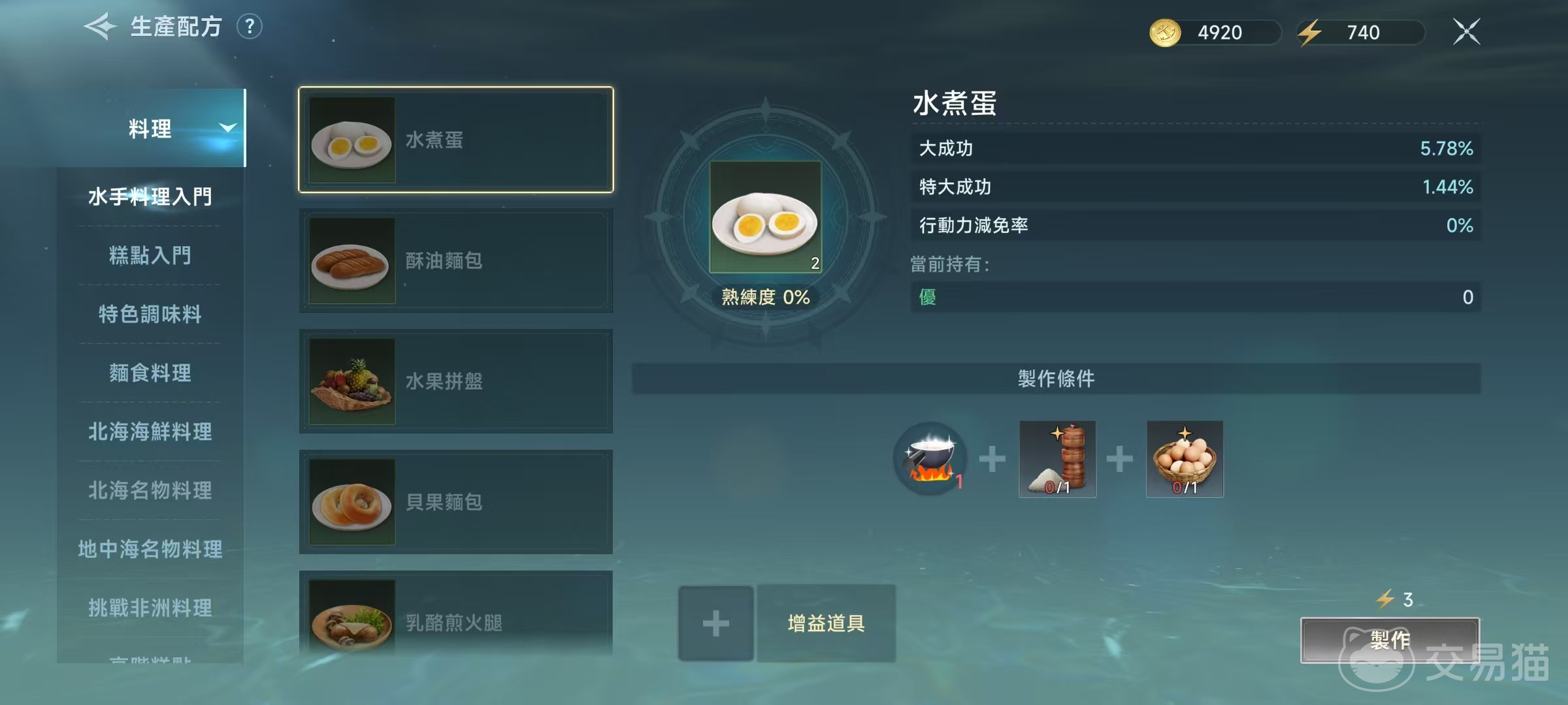 这些生产配方都需要大家通过不同的途径去解锁,其中水手料理入门和糕点入门,只需要在出生地港口就可以直接购买到。而其他的配方书,则是需要在指定地方或者是通过相应任务才能获得,例如通过海事投资、海战或者是委托任务等,都有几率获得这些配方书。在学习了对应的配方书之后,就可以打开进行对应美食烹饪。例如在水手料理入门中,可以制作水煮蛋,酥油面包,水果拼盘等,都是最基础的烹饪。