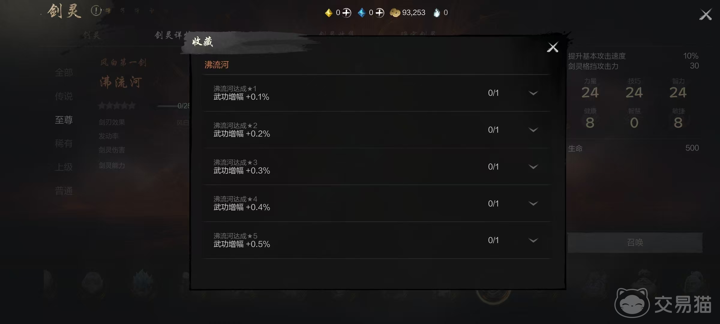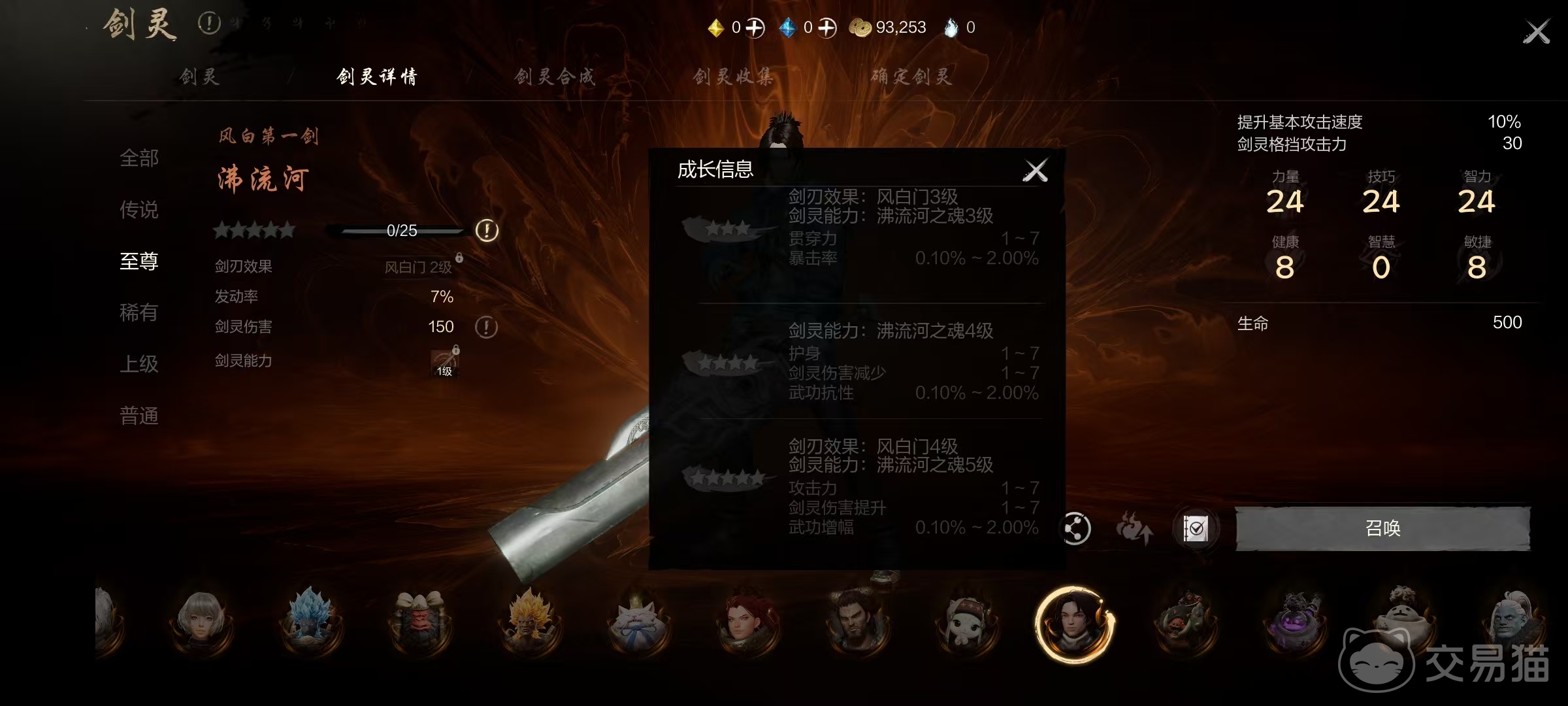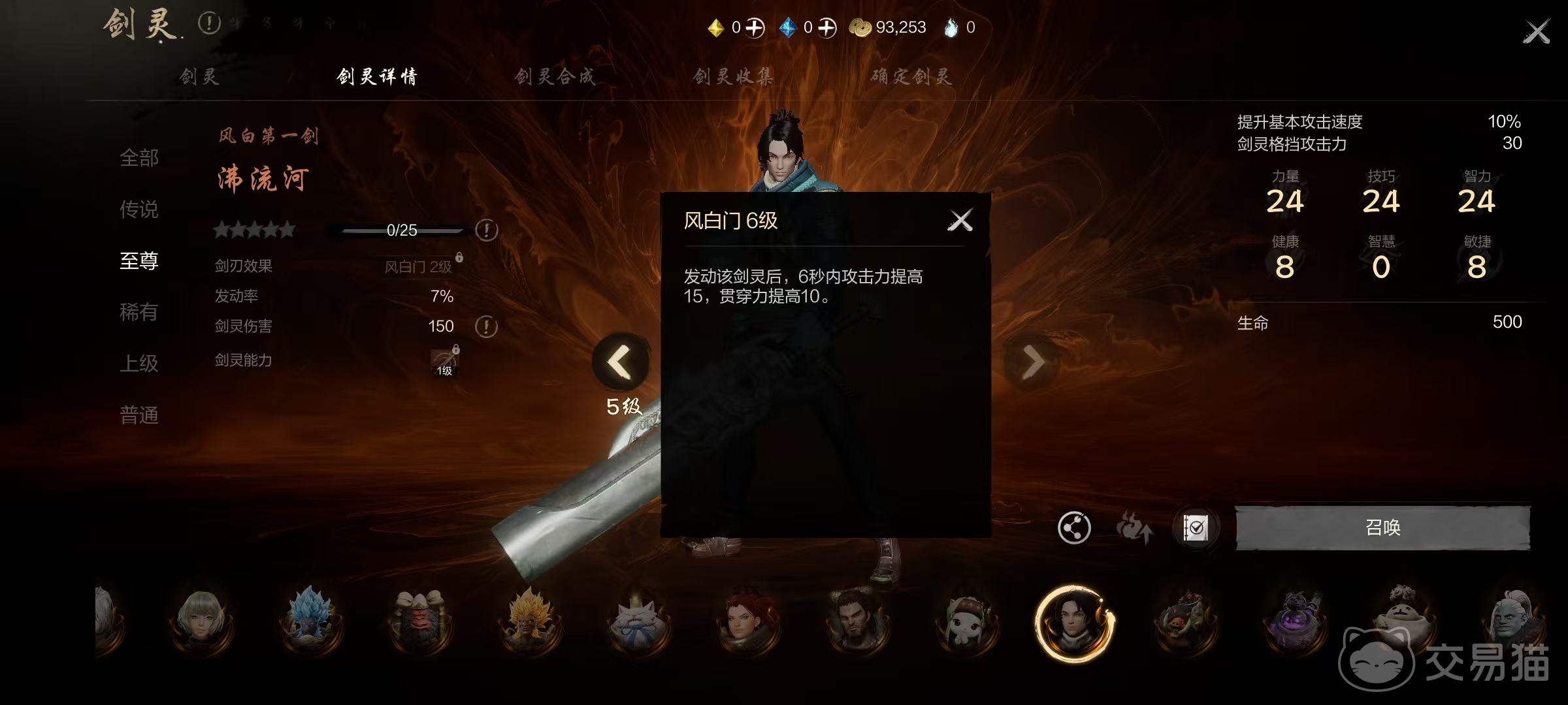 风白第一剑是属于至尊品质,在属性方面仅次于传说,对于大多数玩家来说,这一品质的剑灵都是完全值得培养的,即使不作为主剑灵,也一定会成为附属剑灵帮助战斗。风白第一剑的剑灵效果是提升力量、技巧和智力均24点,还有8点健康和8点敏捷,以及10%基本攻击速度提升和30点剑灵格挡攻击力提升,还有500点生命值。