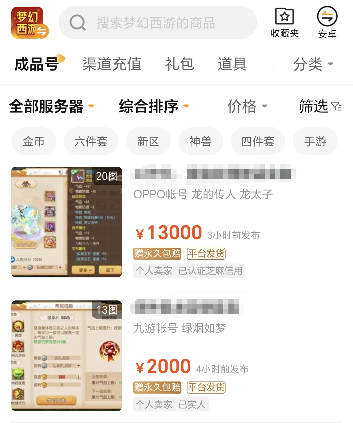 交易猫平台为用户提供了非常便捷的定制化账号商品查找方式。玩家可以通过平台内的强大搜索功能,快速定位到所需的特定游戏账号。例如,在寻找梦幻西游账号时,只需在搜索栏输入“梦幻西游”,平台会自动展示相关的账号商品。同时,平台还提供了多种筛选选项,用户可以根据价格、等级、道具等条件进行组合筛选,从而轻松找到最符合自己需求的账号。如果你有预算上的考虑,平台也支持设定价格区间,确保玩家能够在预算范围内找到最具性价比的高等级账号。这样的搜索和筛选功能,极大提高了账号购买的效率和精准度,帮助玩家快速锁定理想的游戏账号。