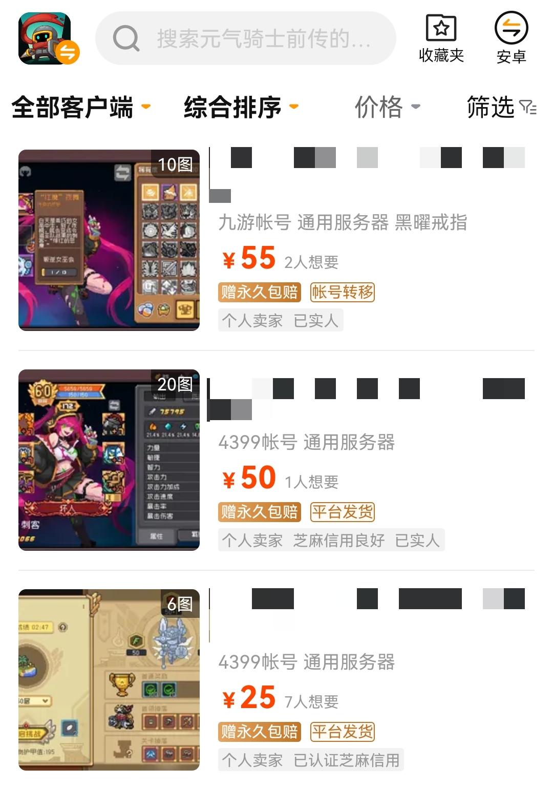 想通过交易猫买号的话,安卓用户需要点击上方按钮下载交易猫App;ios用户直接到交易猫官网挑选账号就行。以凉屋游戏出品的元气骑士前传为例,这是一款充满乐趣的像素风格地牢探险游戏,玩家需要通过不断探索、收集装备和提升角色能力来解锁更多内容。然而,从零开始往往需要投入大量时间和精力。通过购买账号,玩家无需爆肝或花重金,就能直接获得稀有的角色和装备,性价比极高。此外,购买成品号还能越过漫长的新手期,直接体验游戏的深度内容,快速享受游戏的乐趣。