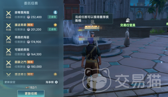 想要在游戏里体验海事玩法,那就需要先去港口,在港口这里会有委托人,会委托玩家大量的海战任务,每一个任务都有不同的酬金,并且根据任务难度的不同,都会划分出相应的等级,完成任务之后,玩家还有机会获得一些物品的奖励,可以根据自己的能力,在这里选择不同的海事任务,大部分都是海战玩法。