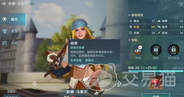 船用机械如复杂的罗盘、控制风帆升降的绞车等,在她眼中如同精密的玩具,她熟悉每一个机械部件的运作原理,能够熟练调试罗盘,确保航行方向的精准无误,对船装满怀热爱的她,拥有天马行空的想象力与独特的审美,她可以根据不同的航行需求,设计出创新的船帆样式,玩家只需跟随游戏主线任务推进,便能顺利将这位充满活力与梦想的船匠招募至麾下。