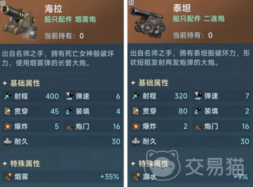 普通炮也就是最万金油的火炮,其特性就是在命中敌人舰队后有可能会触发摇晃效果,摇晃效果可以使对面的水手概率性的落水,在任何战斗场合都很适用,和其他的火炮相比,普通炮的射程是最远的,弹速也很快,装填速度也是最快的,所以非常适合玩炮兵的玩家。烟雾炮就简单了,作为辅助炮在击中敌人后会出现烟雾效果,致使敌人的火炮命中率下降、装填速度下降,常常见于高端的PVP战斗之中。