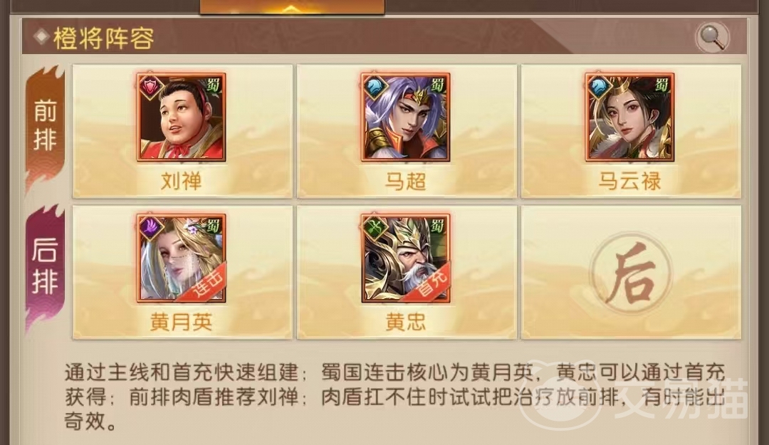 三国问鼎山河黄月英擅长治疗和辅助,也是蜀国阵容中连击的核心角色。作为后排的核心角色,黄月英辅能力一流。在于刘禅、马超、马云禄、黄忠兼顾治疗连锁输出,是蜀国橙色阵容中最强的一套阵容。在场上多一位蜀国武将,黄月英的治疗和怒气加点都会额外回复。