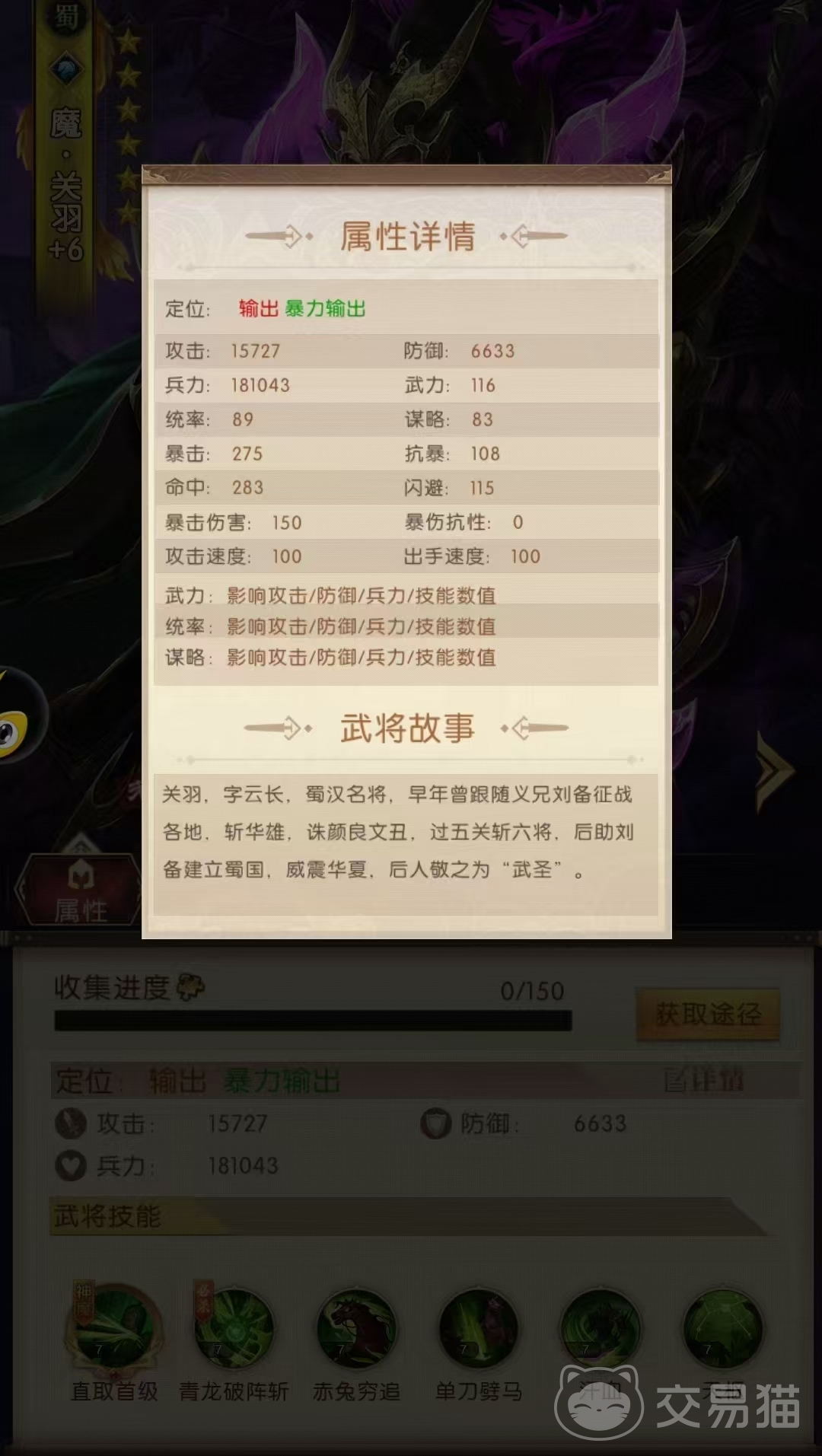 三国问鼎山河关羽在游戏中的设定就很强了,是应该限定角色在阵营中是魔的阵营,但是又是属于蜀国的阵营。这样的高品质下,给关羽的战法技能就有两个!实力和画质是最顶级,也是整款游戏中为数不多的顶级武将!今天我们就一起来一睹关羽的英姿飒爽!