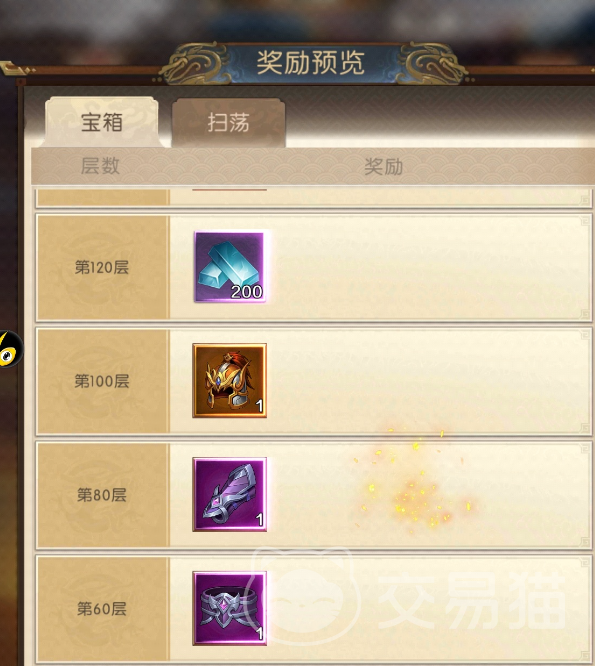 在秘境副本的设定中,塔的层级别越高玩家面临的战斗挑战越严峻。需要不断的调整武将的阵容,根据塔的关卡难度作出策略挑战。在60层之前,玩家通过一次10层奖励就会获取到一件紫色的装备,在60层之后奖励进行了升级,20层为一个小通关获取到一件高品质的装备。