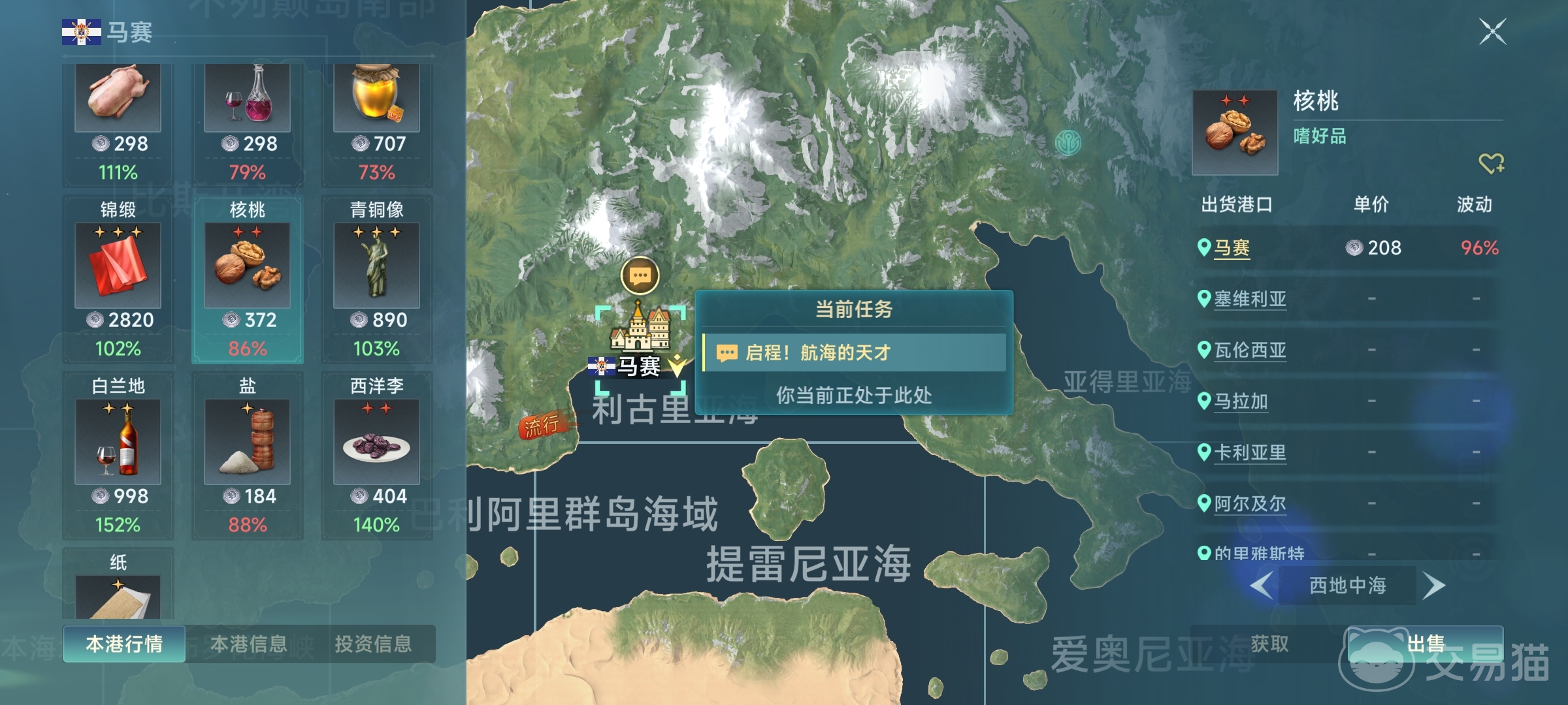 初期,法兰西固定的流行商品为核桃干,运往巴伦西亚可以获得可观利润。但由于回航路线较长,对补给与士气管理要求较高,导致新手阶段的经营体验略显吃力。玩家在前期应着重熟悉各大区域港口之间的距离、物资价格及流行品变动规律,通过多次实践积累航线经验,逐步构建起一条稳定高效的贸易链条。在此过程中,建议玩家合理规划货物装载,避免因盲目追求利润而导致船只超负荷,增加遭遇海上事件的风险。