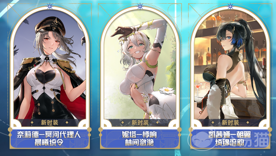 然后还有全新时装,妮塔-精灵,妮塔的精灵主题时装,角色外观更加多样化。凯茜娅-旗袍,旗袍时装,展现东方魅力。卜卜-护士,护士装扮。芬妮-辉耀,“辉耀”时装,可通过月卡获取,有双形态。肴-冬至,女仆装扮,可通过累积充值获得。
