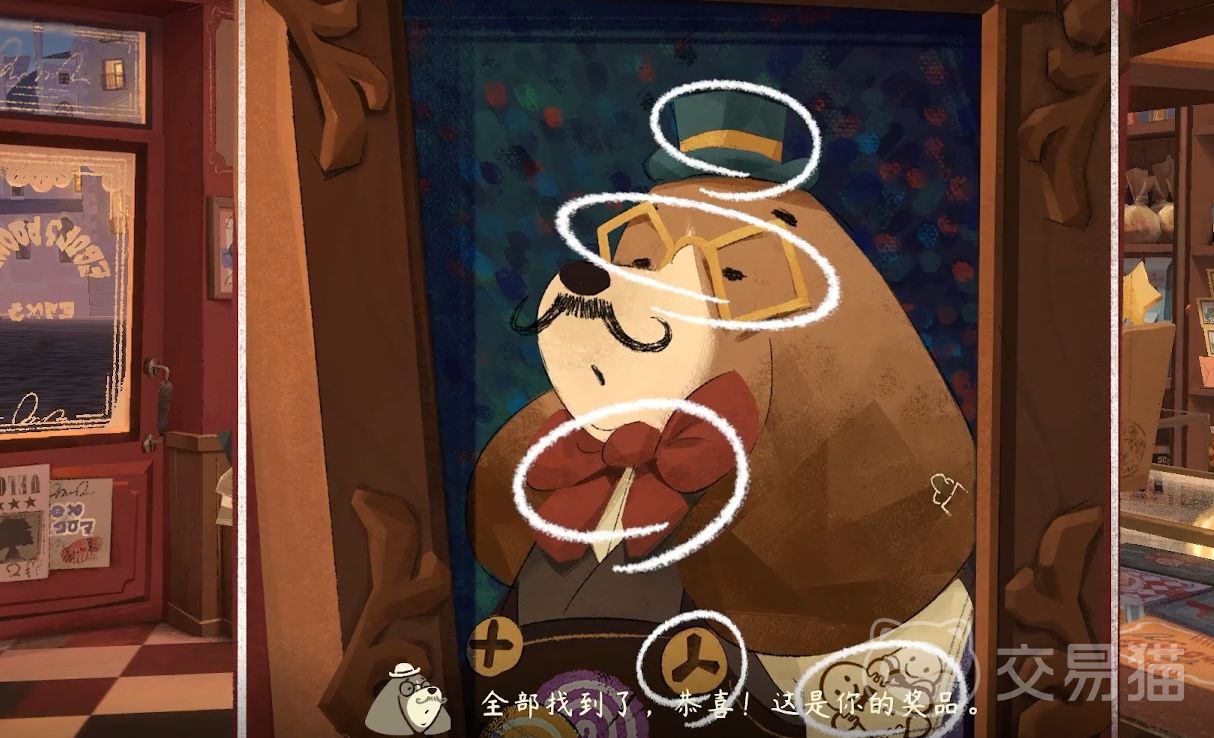 进入店面选择阻止后,小女孩会逃跑,我们此时点击店角落的画像,会开启找不同的小游戏,需要我们找出老板5个和现在不同的点,这里答案可以直接参考下图,完成后老板会奖励我们一盒糖果,此时如果我们打开背包会发现票没了,但这里先不用管。