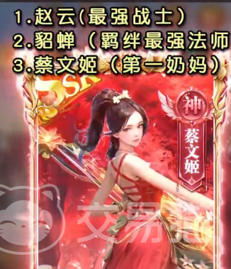 蔡文姬:属于一个辅助位的武将,拥有清除我方成员负面状态的能力,还拥有治疗的效果。迅速的提升整个队伍的治疗效果。
