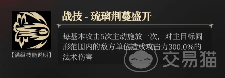 除了奥义技能的效果之外,安普莎的战技叫做琉璃荆蔓盛开,这一技能展现了安普莎对自然之力的完美掌控,每当她进行基本攻击达到5次时,就会主动触发一次强力弹射的效果,强力弹射的效果就是会在主目标8米范围内弹射5次,每次弹射都会对命中的单位造成相当于安普莎攻击力45.0%的法术伤害,这一技能的释放,虽然没有上面大招那么强大,但是比较是一个战技也属于不错的数值了。