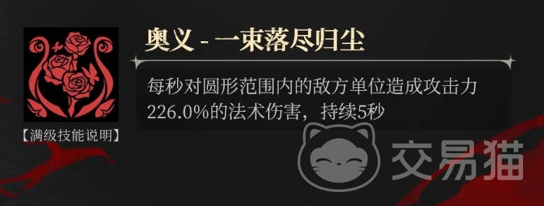 安普莎,这位拥有绯花少女称号的角色,首先最强的就是她的奥义技能,叫做一束落尽归尘,当安普莎施展这一技能时,她会召唤出一束光芒,这束光芒在接下来的4秒钟内,会持续对主目标周围3.5米圆形范围内的随机敌方单位造成巨大的法术伤害,每秒的伤害都等同于安普莎攻击力的100%,这一技能后后续是提升之后最强大的伤害技能。