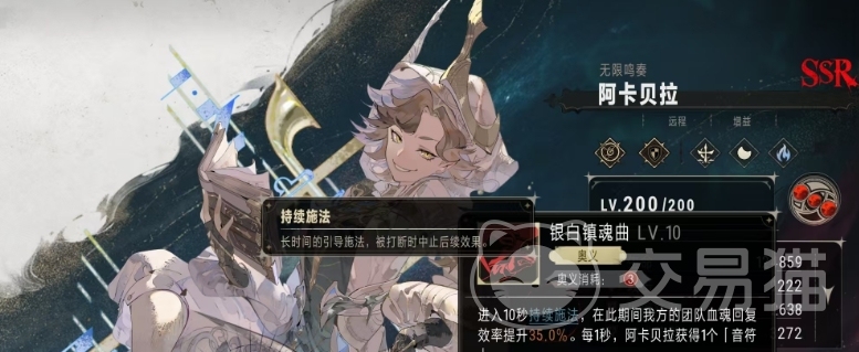 而阿卡贝拉的奥义技能银白镇魂曲则是她辅助能力的又一体现,释放这项技能后,她会进入为期10秒的持续施法状态,在此期间,她需要引导技能,确保不被打断,否则将终止后续效果,在持续施法期间,我方团队的血魂恢复效率将得到提升,每一秒钟阿卡贝拉都能获得一个音符,这些音符是发挥她治疗能力的关键资源,值得注意的是,音符的作用主要依赖于阿卡贝拉的自身特性古音律调。