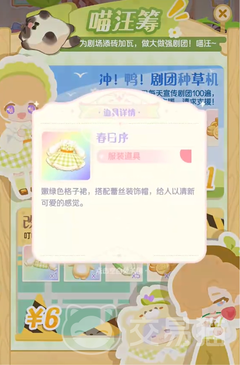 如果大家想要获得更多奖品,那可以了解一下花花与幕间剧喵汪筹是什么?喵汪筹作为一种氪金玩法,玩家们只需要花费1元。就能够直接获得时尚的裙子,又可以获得海量金币以及其他食品道具。