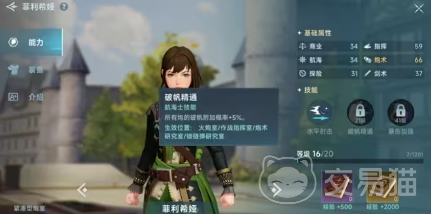 海伦的定位是跑商辅助,她的“偏航防护”能在自动航行发生偏航时,有50%的概率立刻纠正航向,大家可以将其和汉娜搭配在一起培养,这样两人能带来70%的偏航防护十分不错,她的“灾难守护”能降低航行途中负面自然灾害的发射概率,是冒险玩家的必备。