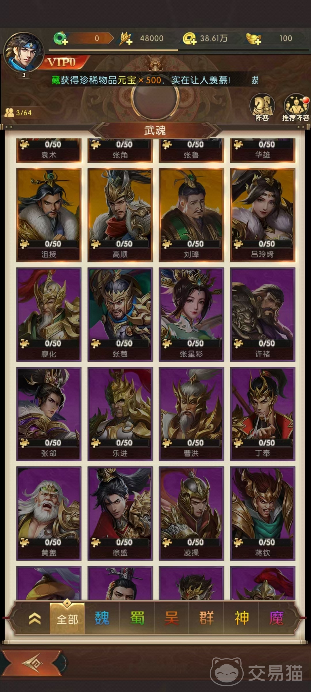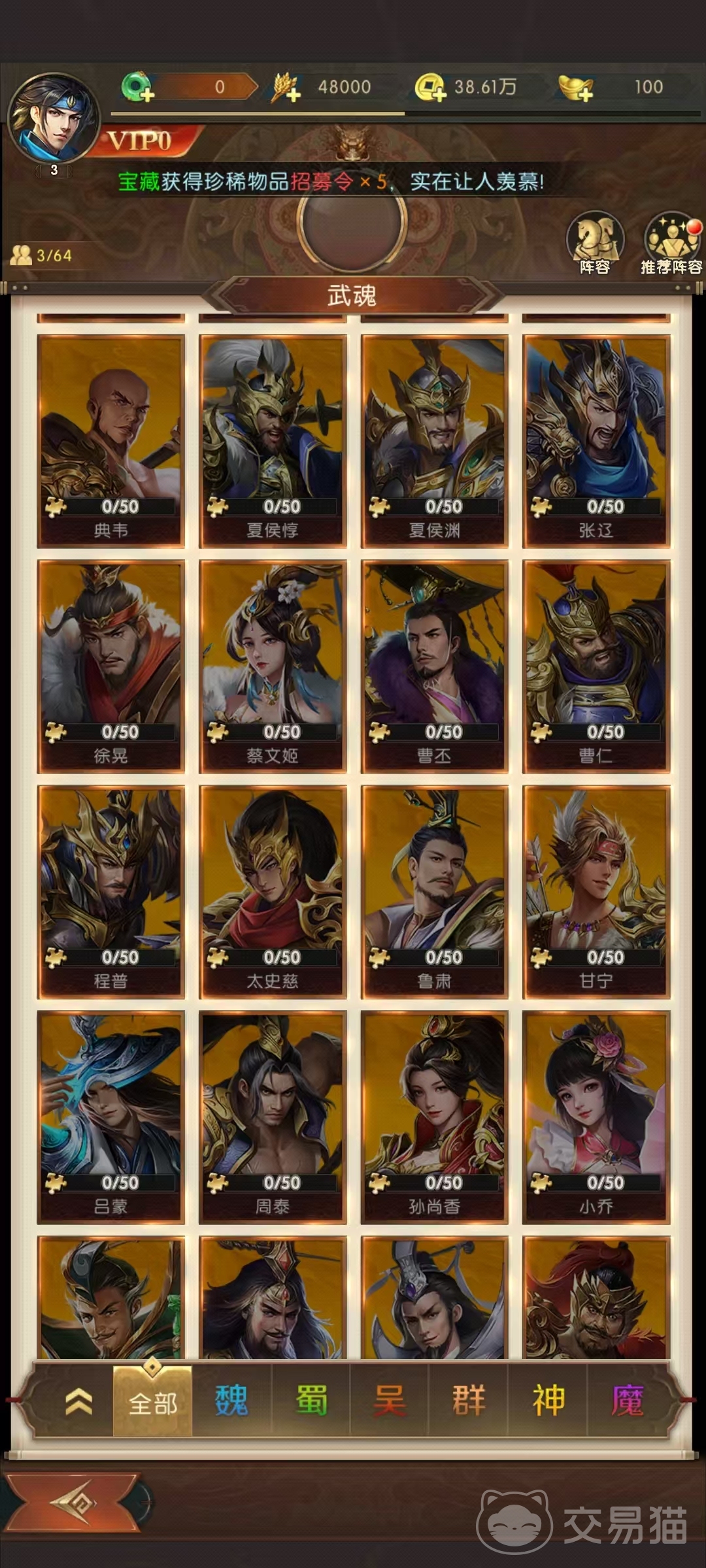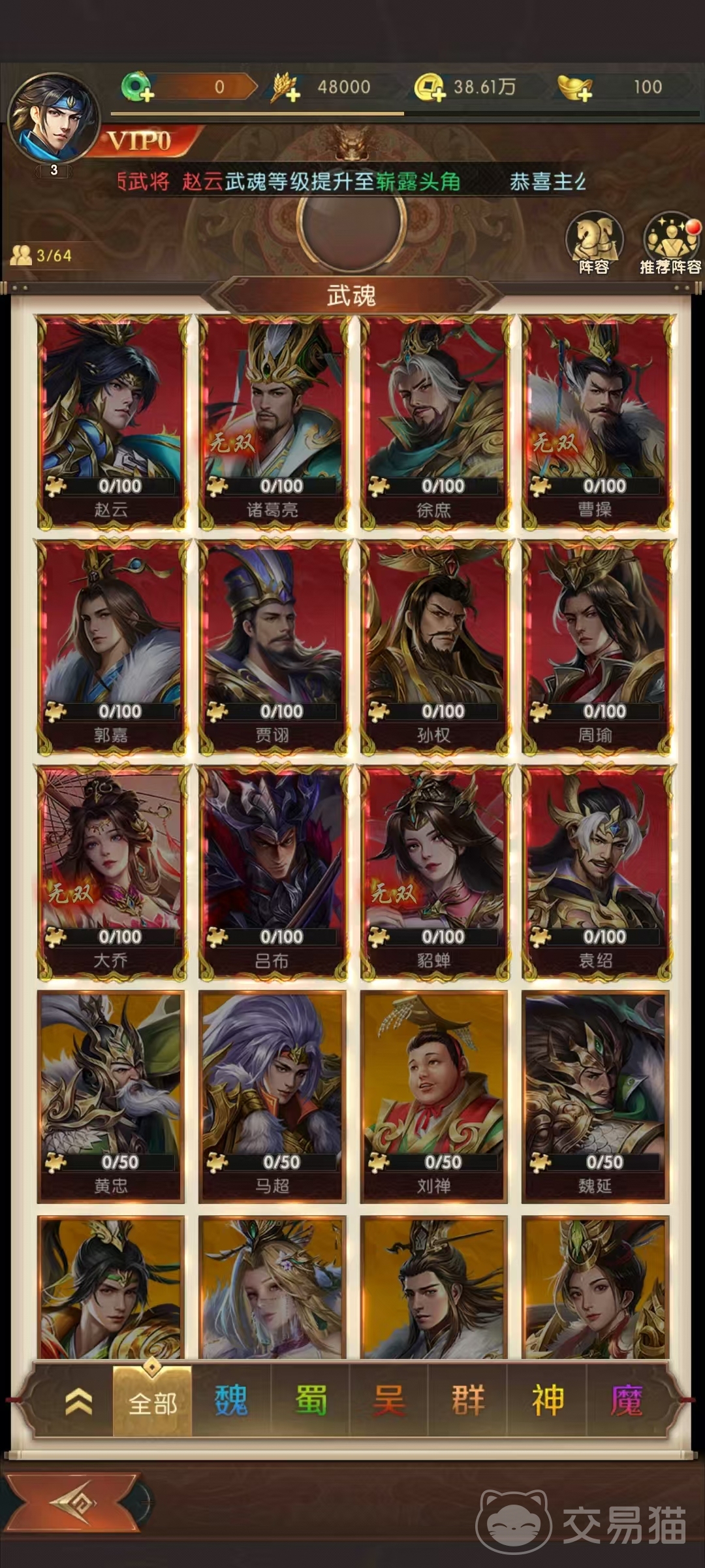 抽卡前,一定要明确自己的阵容需求。如果想组建蜀国爆发流阵容,就重点抽取蜀国高输出武将,避免盲目乱抽。活动卡池开启时,优先攒够保底次数再抽,能大大提高抽到限定武将的概率。比如,提前计算好所需元宝和招募令数量,在活动开启时直接抽取保底次数抽到心仪武将后,培养至关重要。通过升级、升星提升武将属性和技能等级,搭配合适的装备,能让武将实力大增。阵容搭配上,要考虑武将之间的技能联动和阵营加成。如魏国武将多有中毒和召唤物技能,搭配在一起能产生强大的连锁反应。