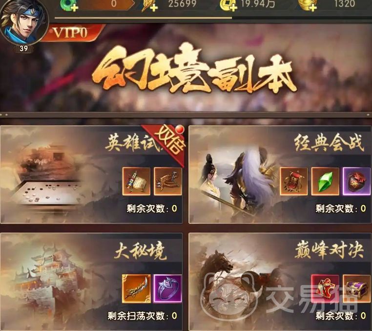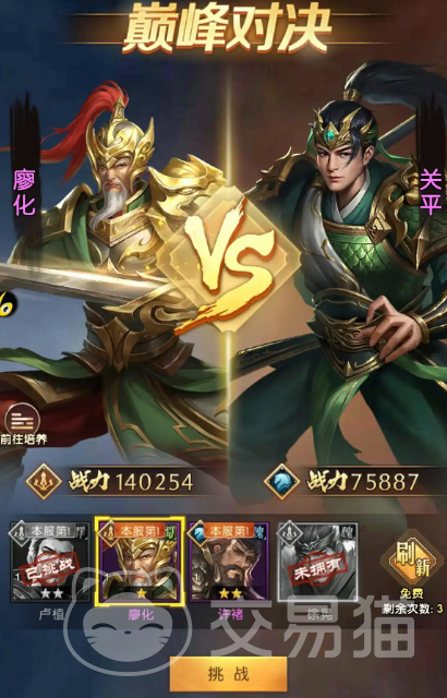 【巅峰对决副本】是玩家获取到神器的副本,通过不同的1v1挑战难度获取资源。在这个副本中不断的让武将越来越强,获取到更强大的武器。后续随着玩家等级的升高,陆陆续续会解锁更多的副本模式。