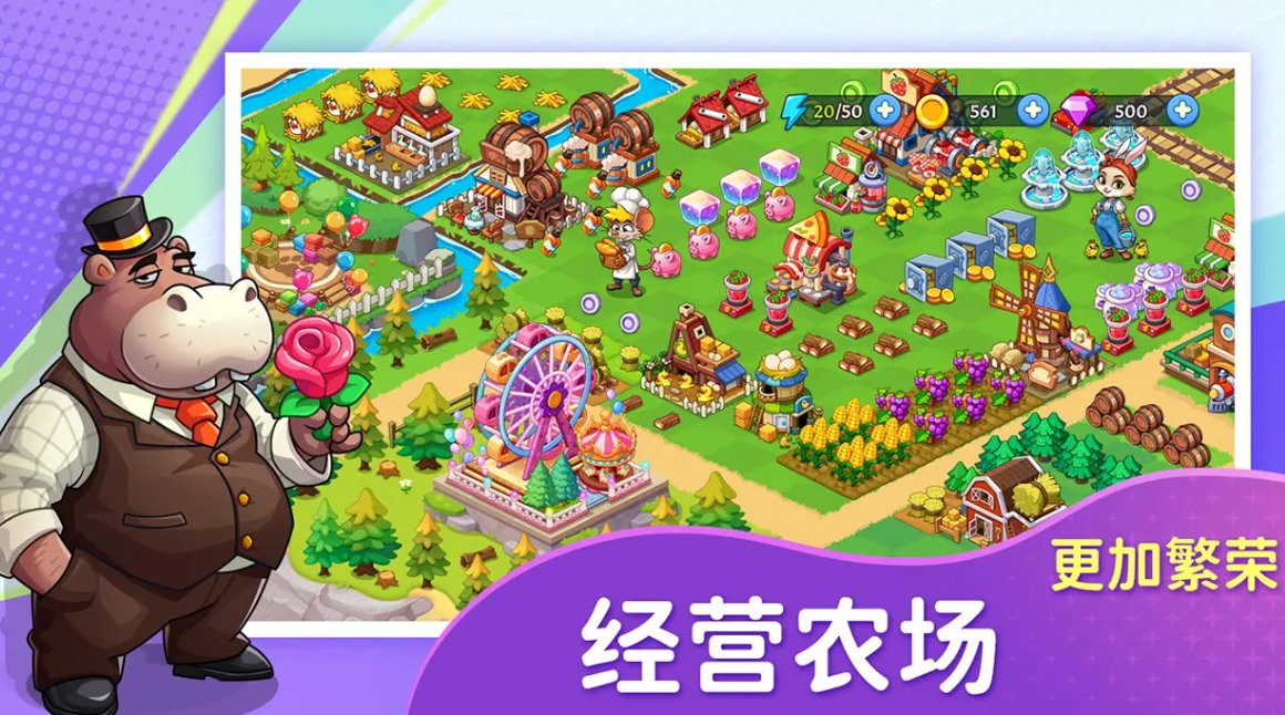 游戏内获取奖励的方式非常多,玩家通过自由布置农田,亦或是土地,同时播种种子施肥浇水,就可以获得农产品和基础的经验数值,随着玩家的游戏经验值不断提高,整体农庄的等级也会不断提升。