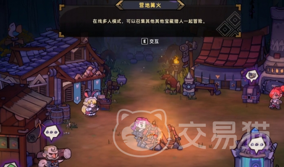 把本地联机的选项给确认好以后,返回游戏界面,前往营地,在营地中会看到一团正在燃烧的篝火,点击一下篝火,篝火上面就会出现一个e键,e键代表的是多人模式,这个模式可以让更多的冒险者加入冒险之旅。