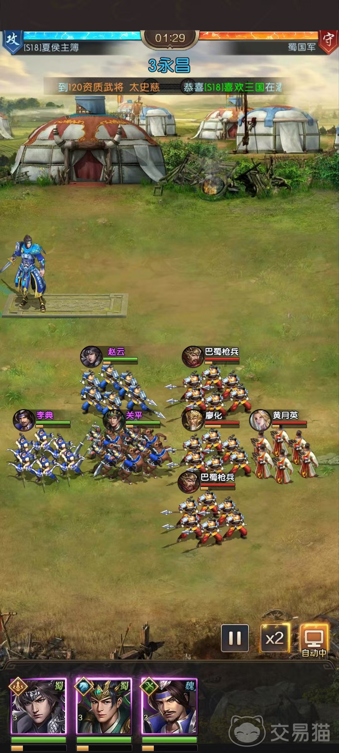 阵容搭配建议选择同国体系激活阵营加成。蜀国以马超为核心,搭配黄月英提升连击概率,黄忠负责残局收割,通过连击回怒与暴击治疗机制形成高效输出与生存平衡;魏国推荐曹丕与蔡文姬组合,利用持续消耗与续航压制敌方;吴国围绕太史慈、小乔构建控制链,搭配甘宁高爆发实现战术压制;群雄则通过华雄、张角的流血增伤与沮授的治疗增幅形成群体控制体系。兵种站位需优化,弓兵/谋士部署后排,盾兵前排吸收伤害,枪骑灵活调整位置以利用地形优势。