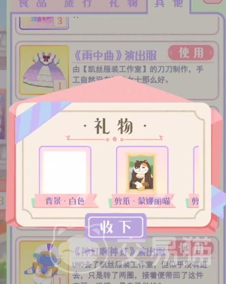 花花与幕间剧购物玩法相对来说还是比较简单的,不需要复杂的操作,会购物也没有多余的设定,玩家只需要按照自己的需求购买这些物品就可以,除了直接购买物品用来让这些角色使用之外,还可以购买一些礼物赠送给其他的成员,这是能增加好感度的,需要注意的是,把物品放到角色背包之后,需要拉好拉链,否则无法触发后续的事件。