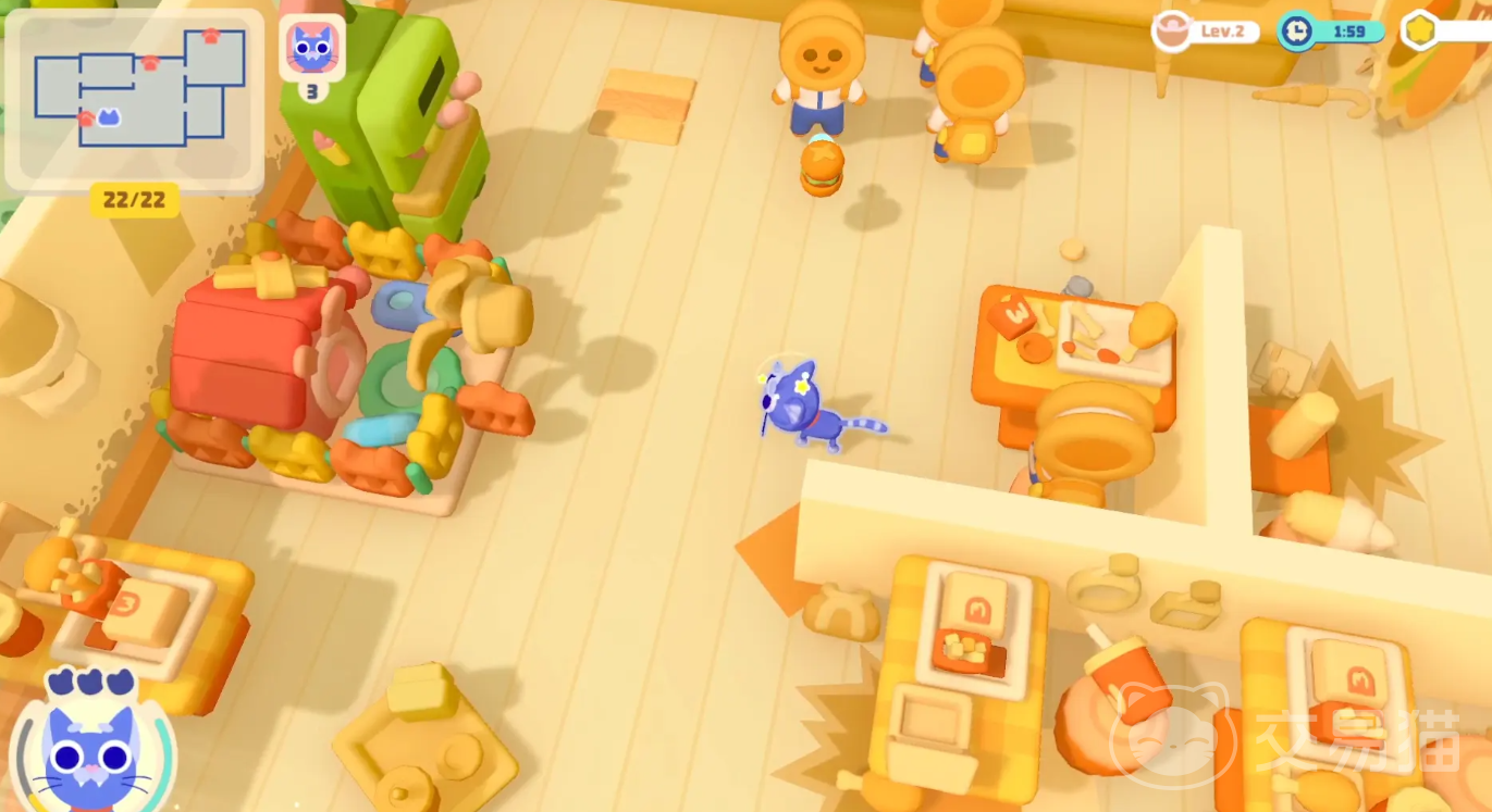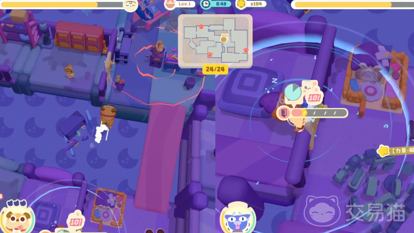 其次,游戏拥有丰富多样的宠物角色和独特技能。游戏中有多种可爱的宠物角色,包括狗狗、猫咪、鹦鹉等,每种宠物都有其独特的外观和个性。每个宠物都具备独特的技能,例如狗狗可以设置粑粑陷阱,猫咪可以发出喵呜声干扰对手,鹦鹉可以模仿老板打电话等。这些技能不仅提升了游戏的趣味性,也为玩家在策略选择上提供了更多可能性。