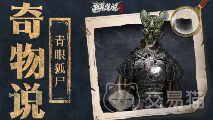 青眼狐尸是一个带着狐狸脸面具,浑身上下有盔甲的男尸,它的面具下面的脸非常惨白,整颗人头上几乎没有毛发,脸庞非常尖,眼睛是一条长长的缝,据传只要看上它一眼就会被传染,脸会变得和青眼狐尸一样。