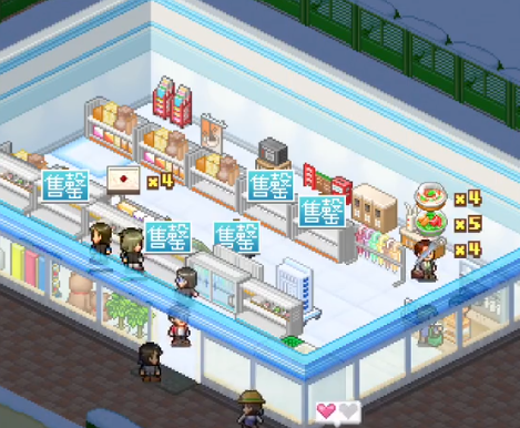 游戏一开始如果店铺的客人不多的话那么我们不用着急招收营业员。营业员的招募是需要花费不少的金币。这对于前期金币不多的时候对于我们而言确实压力不小。收银台可以扩大,但是没必要多招收收银员,等之后资金较多的时候再去聘用。