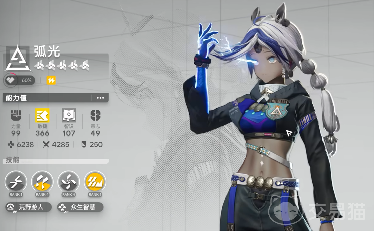在讲解技能之前,先看一下角色的基本背景和人物定位。弧光是一个拿着单手剑的优秀干员,并且属于电属性,由此可看出她的技能都跟电击有关。整体的身材都偏瘦小,所以对比于其他角色来说更加灵活,还有着一头蓝白相间的头发,非常的时尚干练。