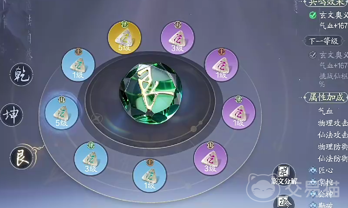 在游戏当中提升道法的手段总共有三种,第一种是直接提升自身的阵灵系统,阵灵可以通过抽卡来获取,每次抽卡获取一个新阵灵时,玩家的阵列系统,都会激活一个战斗力提升单位,不同的阵灵组合,会触发不同的攻击效果提升,例如,当玩家触发了情缘效果,可以提升整体的攻击力数值,以及气血数值。