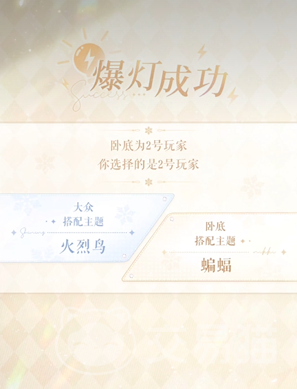 说到积分,在游戏过程中你还能使用“爆灯”功能,这是你提前指认卧底的机会。爆灯一旦启动,你就能直接选出一位你认为最可疑的玩家进行挑战。如果指认正确,你将获得额外的积分奖励。如果失败,那么你也不会一无所获,至少还能获得一些活动积分。不过,爆灯功能并不是随时能用的,每个玩家只有一次机会,得慎重操作哦。
