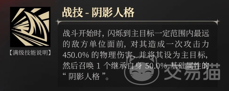 吉尔兰的战技名为典礼号角,这一技能的效果是在战斗开始时,吉尔兰会直接朝着当前方向发起攻击,当遇到第一个敌方单位时,该敌方单位将承受450%攻击力的巨大物理伤害,同时吉尔兰会将其设置为攻击的主目标,这种精准的锁定能力可以让吉尔兰在后续的攻击中能够很好的找到对面的目标,在完成冲锋之后,吉尔兰自身会获得一个名为角尖起舞的状态,这个状态会持续十秒之久。