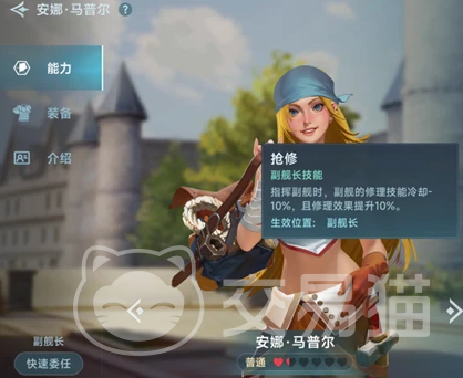 安娜本身的定位是副舰长。自身是属于辅助类型的奶妈角色。作为初期的治疗职业来说,安娜的能力还是十分不错的。基本上我们不管组什么样的队伍都是需要安娜的帮助的,而且安娜的技能都是和修理有关,总的来说培养安娜是非常不错的。